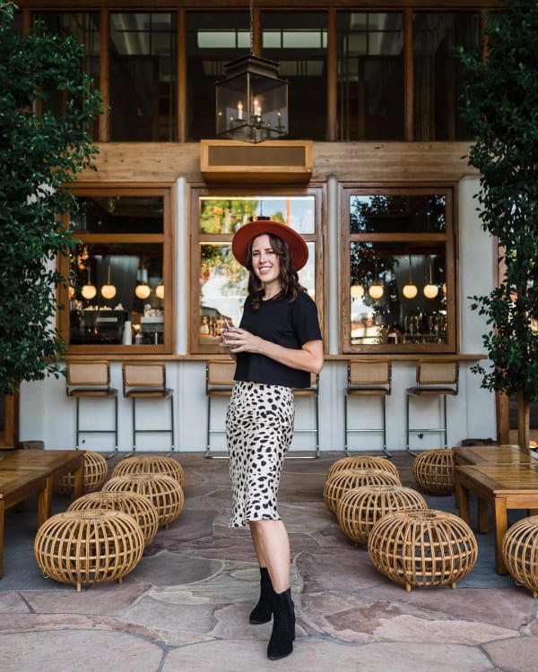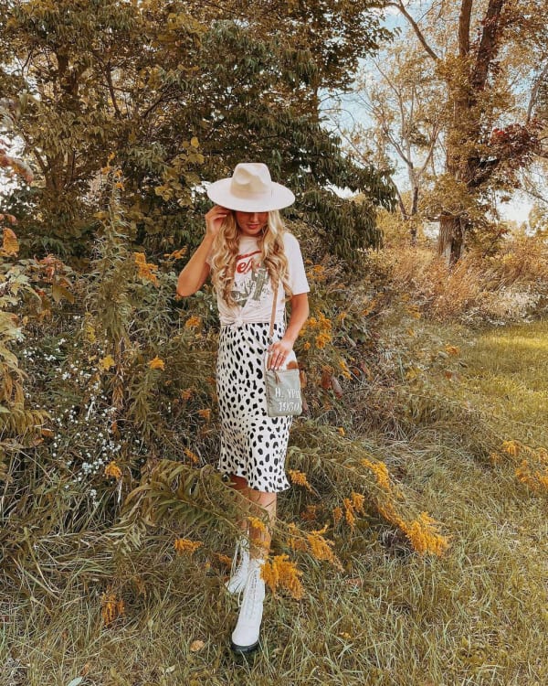 Abstract Dot Midi Skirt in Black/Brown