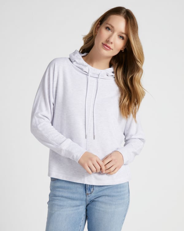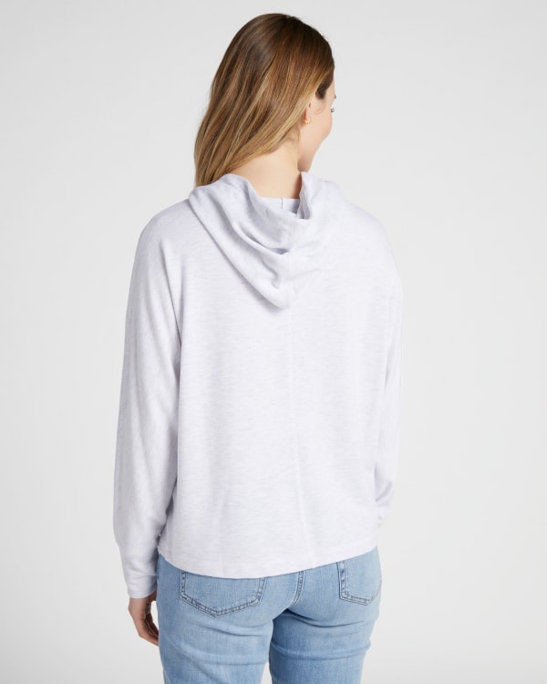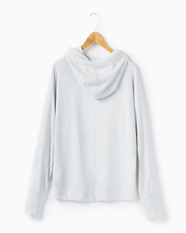 A more elevated take on the classic cozy hoodie. Relaxed fit with a cowl neck drawstring hood and exposed seam detailing. Made of a lightweight knit brushed to so-soft perfection.