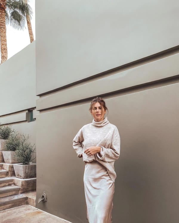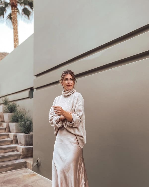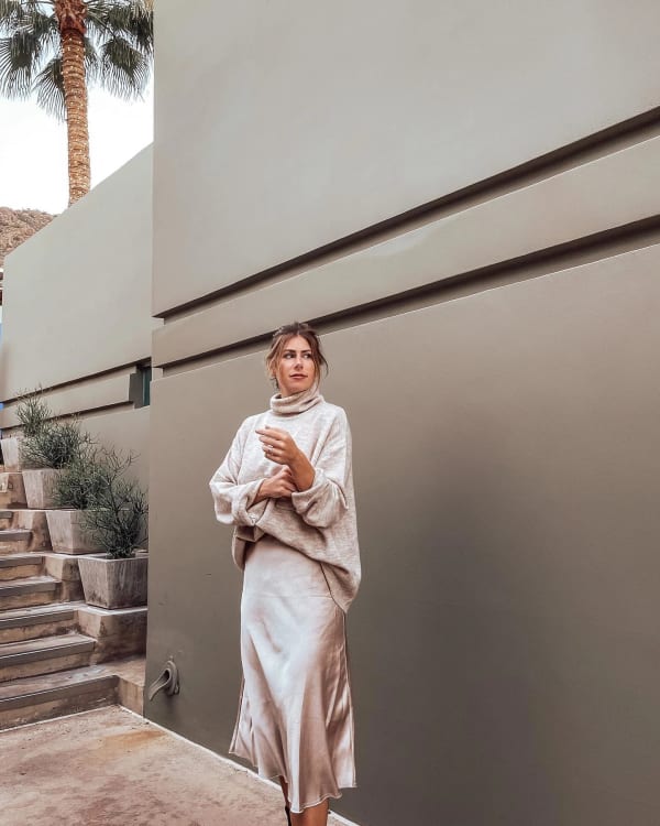 Bias Satin Slip Skirt in Champagne