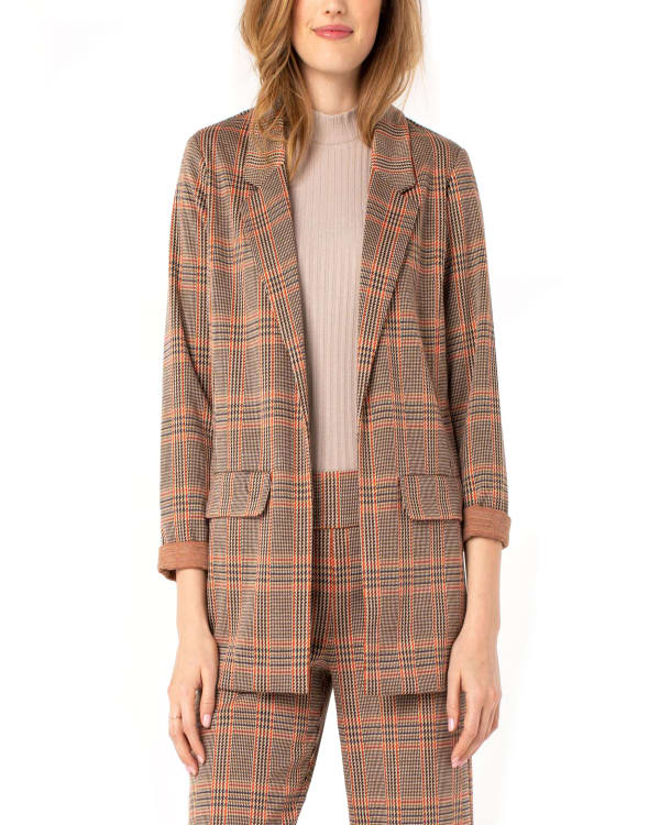 Boyfriend Blazer in Tan/Cream/Rust Glen Plaid
