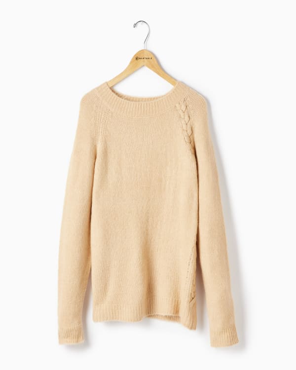 This sweet sweater has a versatile look that goes well with everything! Regular fit with a gorgeous braided detail that runs from the left shoulder to the bottom hem. Wear this cozy pullover with a pair of faux leather pants for a fabulous #ootd.