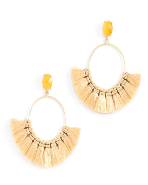 Pair the Bridget Earring with a simple tee or statement blouse and—bam—instant on-trend outfit. Detailed with tassels and a vibrant stone stud, they're an eye-catching accessory guaranteed to turn heads.