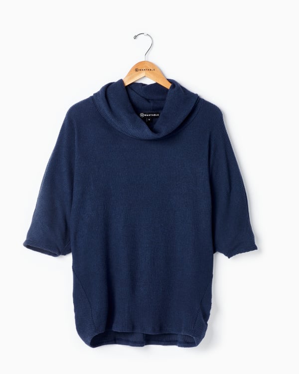 This dolman sleeve top feels fabulously cozy! Relaxed fit with a roomy cowl neck and a longer hem. Made in the USA of a stretchy ribbed knit that has been brushed to ultra-soft perfection.