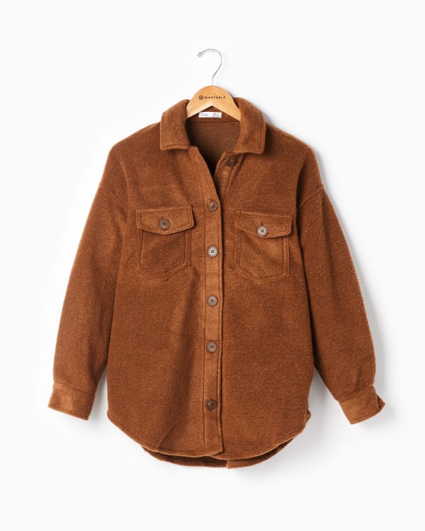 Button Front Overshirt in Dark Camel