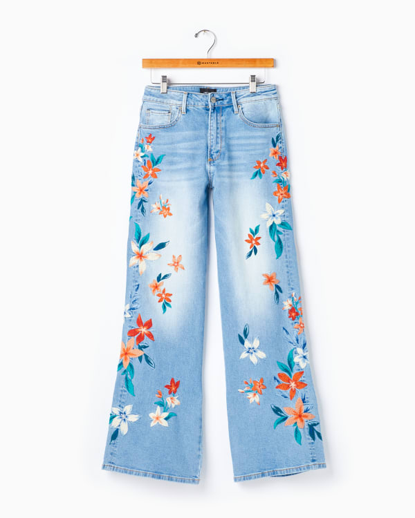 A premium quality denim with all-over embroidery? A must-have! The Charlee features a flattering high-rise waist and a wide leg that crops at the ankle. (26" inseam) Tested by our expert personal stylists so you can look great in it — order now to enjoy free shipping and returns. 99% cotton, 1% spandex, machine wash cold.