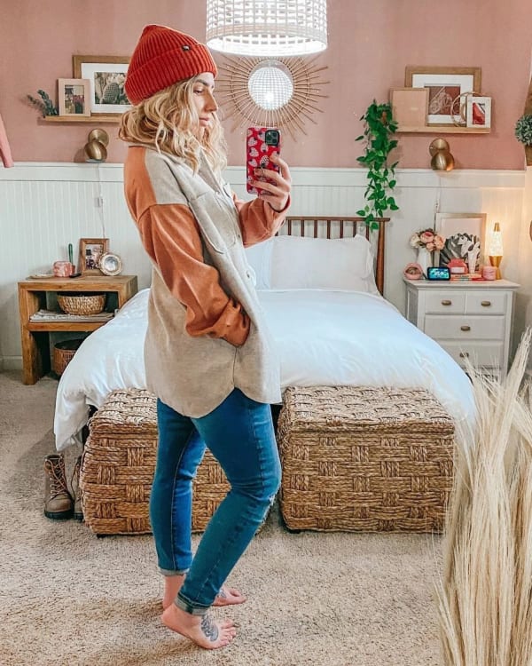 Colorblock Shacket in Taupe/Rust