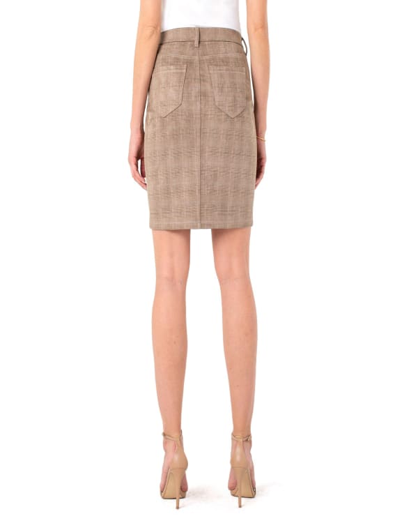 Gia Faux Suede Skirt in Light Tan Glen Plaid