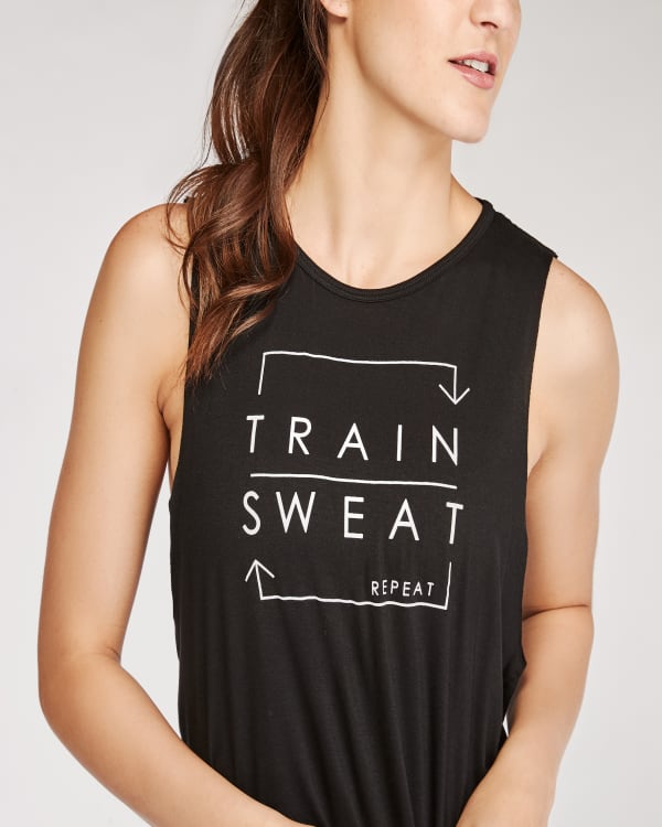 Train. Sweat. Repeat. This relaxed-fitting muscle tank will give you all the motivation you need to reach your fitness goals. Made exclusively for Wantable by our in-house brand, Interval, this piece delivers on-trend styling as well a powerful statement.