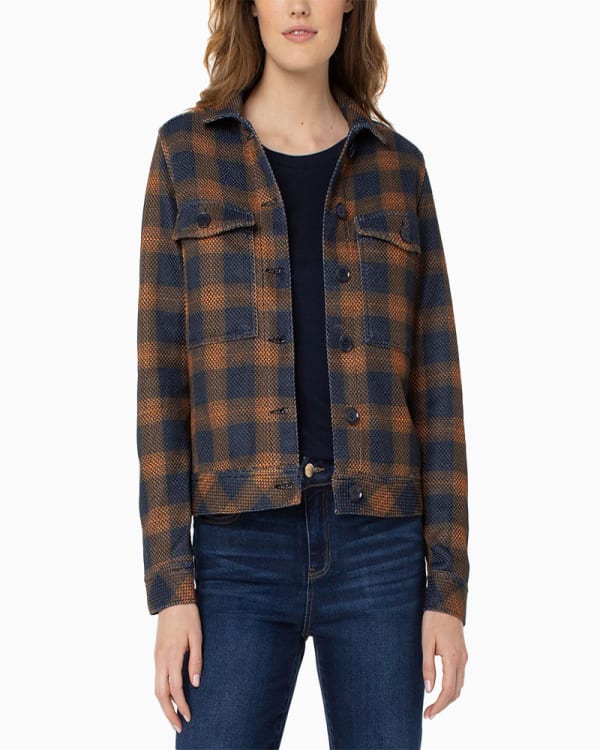 Jacket w/ Patch Pockets in Navy/Org Buff Check