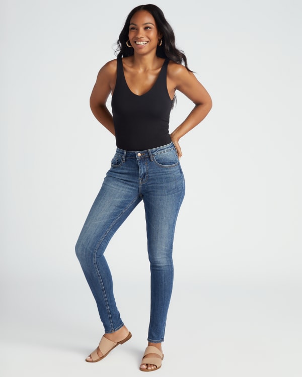 A hint of stretch makes these skinny jeans worthy of your regular rotation. Full-length and leggy with a midrise waist. Finished with just the right amount of comfy stretch.