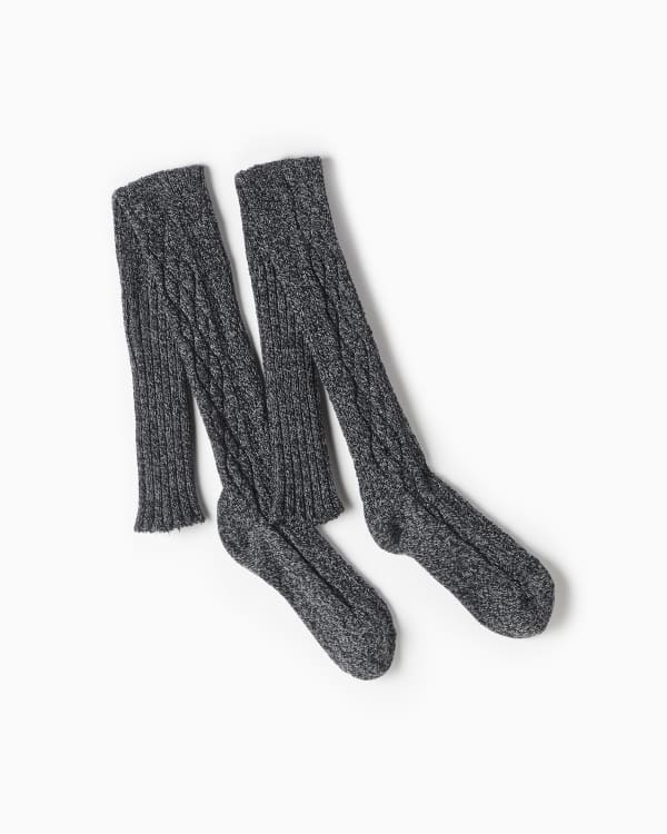 Sustainability is what these knee-high socks are all about. Knit from recycled polyester stretch with a wide cuff and seamless toe. Made in the USA.