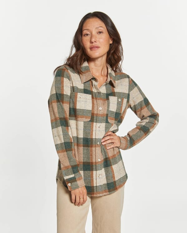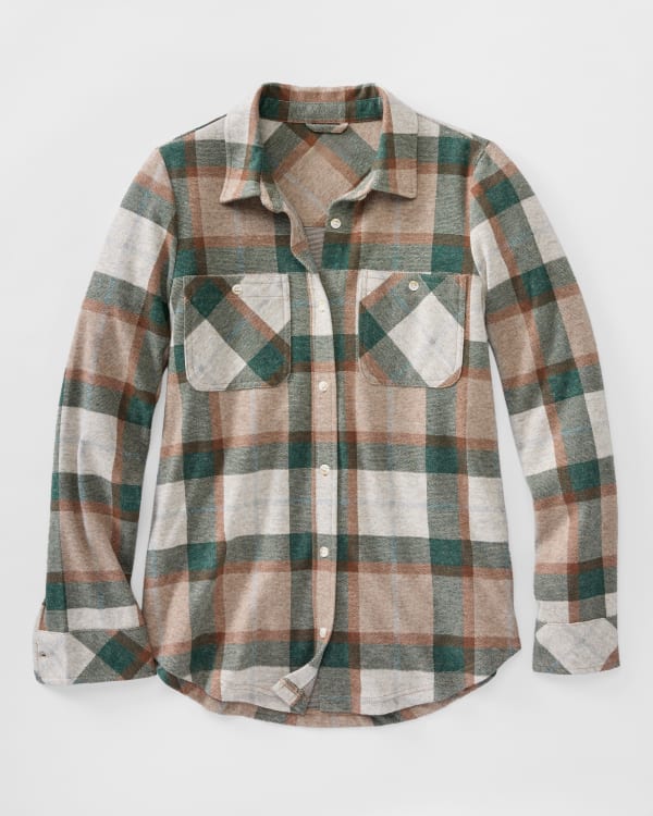 A cozy long-sleeve plaid shirt you'll want in every color. Relaxed fit with a button-up front, two breast pockets and a floaty shirttail hem. Made of stretchy-soft brushed fleece that you can leave open or rock on its own.