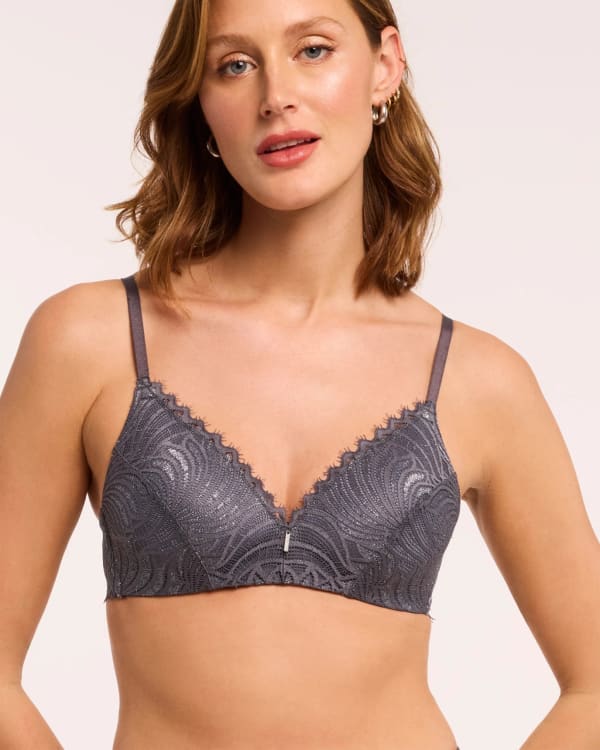 The bra that does it all—without the wires. Designed with full triangle cups and a curve-hugging lace overlay, it’s equal parts comfortable and captivating. Made of a soft, stretchy nylon blend that fits like a dream.
