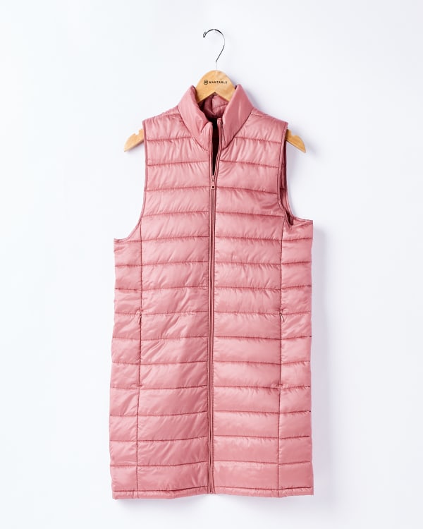 Long Puffer Vest in Withered Rose