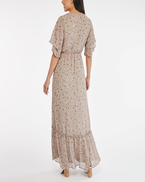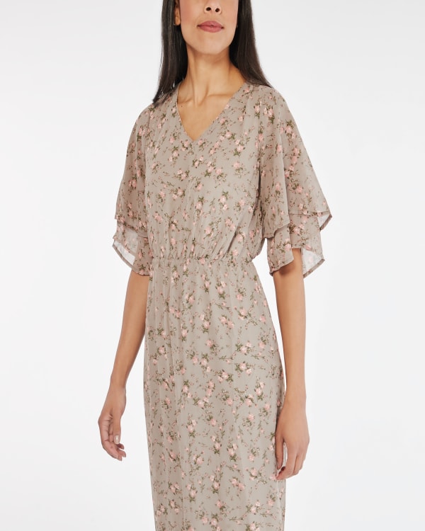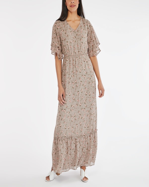 Steal the spotlight in this classic breezy maxi dress. With a flattering silhouette, double layer sleeves, and a floral print, this dress is sure to keep you feeling feminine and stylish through any day.