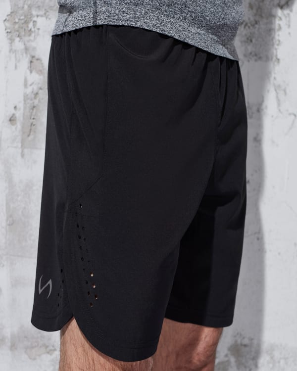 These shorts are made of super lightweight material ideal for the gym, running, cross-fit, or any type of indoor or outdoor training. Side vents and laser cut details provide the ultimate in cooling and ventilation. Inseam: 8"