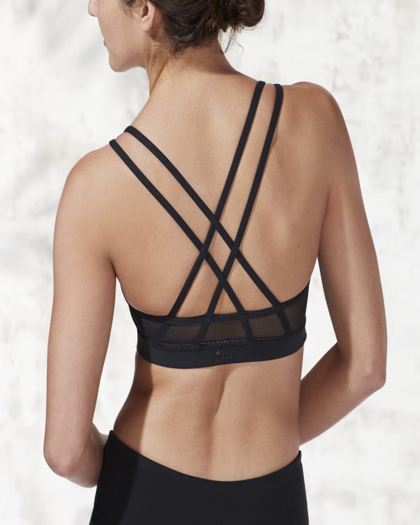 The Multi-Strap Bra is built for maximum comfort and style, with medium-impact support. A scooped neckline and full back mesh panel add to this strappy bra's 360-degree style. Sustainably crafted from breathable, moisture-wicking materials in an eco-friendly facility. Removable cups included.