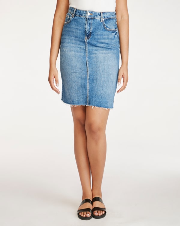 A good day starts with a great denim skirt. This comfortable and oh-so-versatile piece is crafted from a cotton blend with a hint of stretch and detailed with a raw hem. With it, you'll be able to create plenty of amazing outfits.