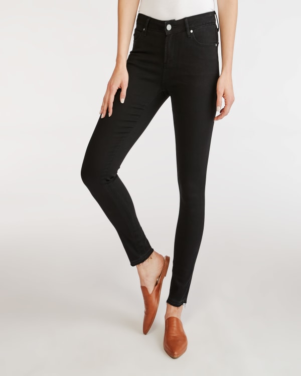 The Sarah Ankle Skinny is cut from premium stretch denim to ensure a flexible fit that provides all-day comfort. Finished in a black wash, this mid-rise pair of jeans detailed with a raw hem will easily pair with your wardrobe favorites. (Inseam: 29")