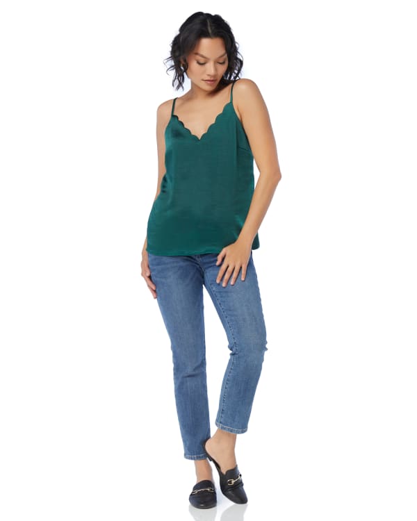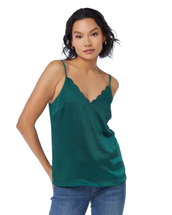 This satin cami will smarten up any look! Relaxed fit with adjustable straps and a stunning scalloped neck. Made of silky-soft satin with a sophisticated sheen.