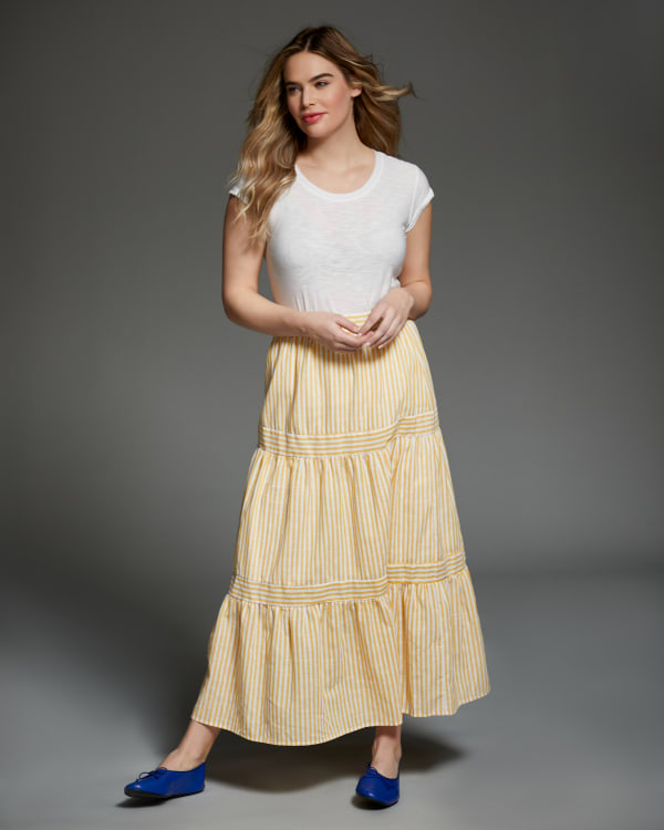 Seersucker Tiered Maxi Skirt