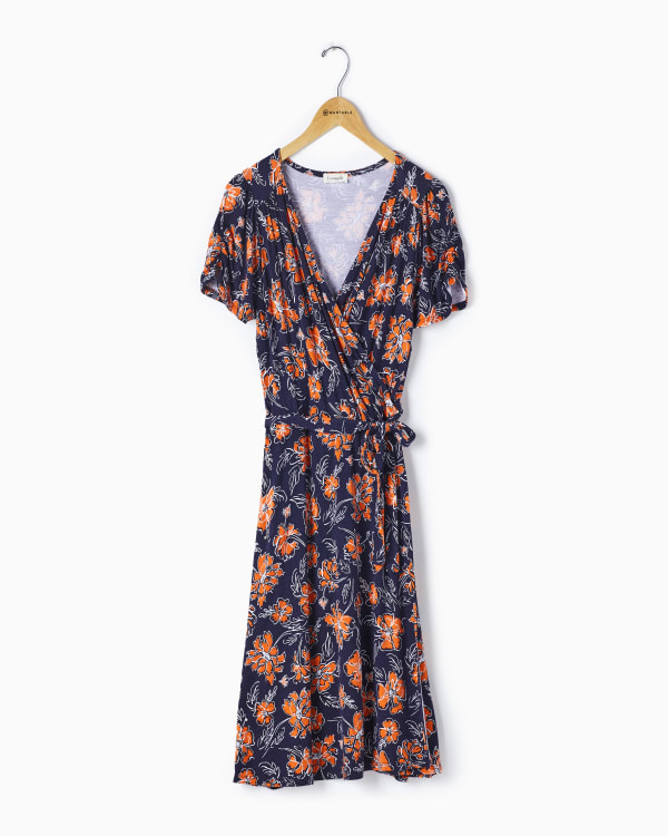 A classic wrap dress with an ultra-comfy feel! An eye-catching print elevates this so soft and stretchy wrap-style dress with a flattering tie waist and short ruched sleeves. Wear it with a clutch for the #ootd.