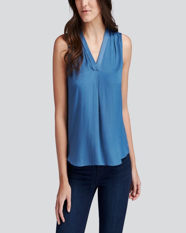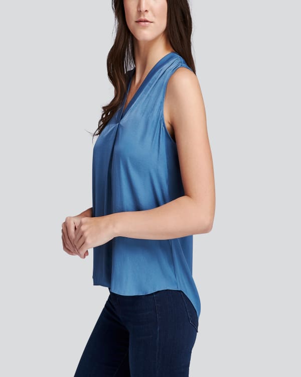 This silky sleeveless blouse will elevate you wherever you go! Breezy fit with a longer hem in the back. Pair this so soft top with some faux leather leggings and a blazer for further luxe, or keep it cool and casual with boyfriend jeans.