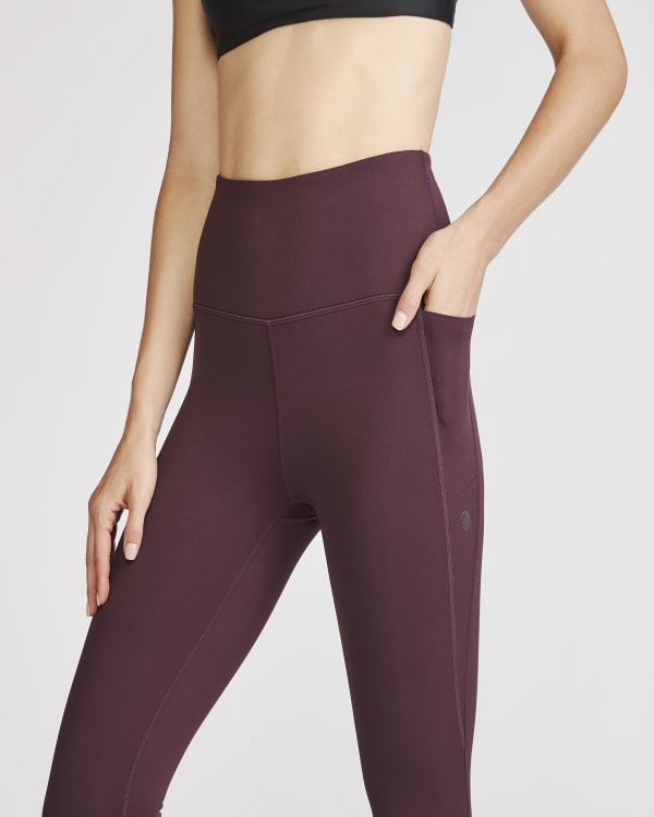 This ultra light weight, high waist legging offers comfortable above-the-belly-button coverage while providing compression without restricting movement. Features side pockets and an elastic draw cord.