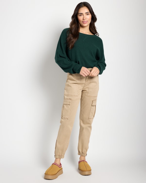 Cargo pants that pack a style punch. Relaxed fit with a tapered leg, a comfy mid-rise, six pockets and a cute cinched ankle. So soft in a stretch twill that’s so on-trend.