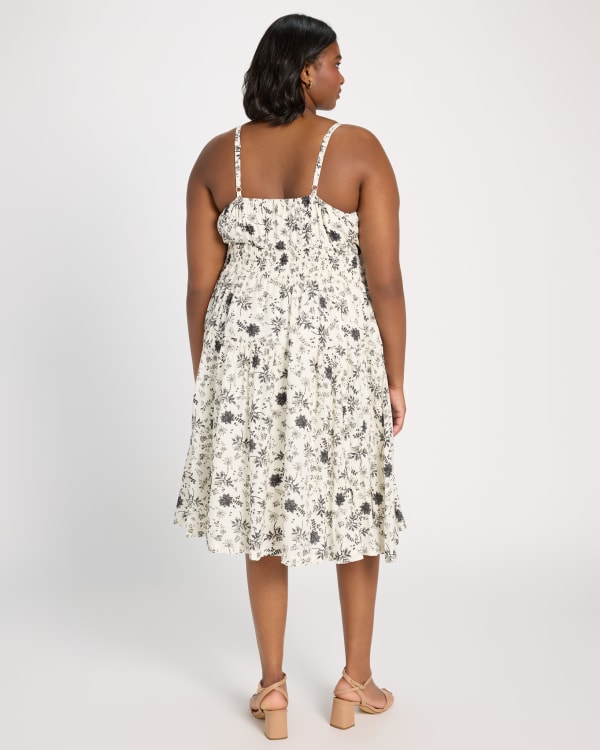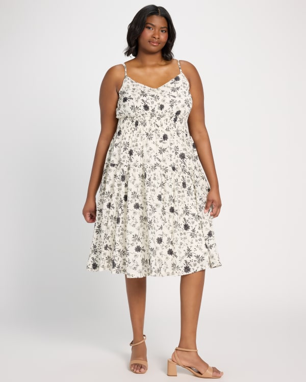 Look no further for your perfect garden party dress! This floral midi dress has a regular fit with a smocked waist, adjustable spaghetti straps, a shirred elastic back and a built-in slip. Made from breathable rayon.