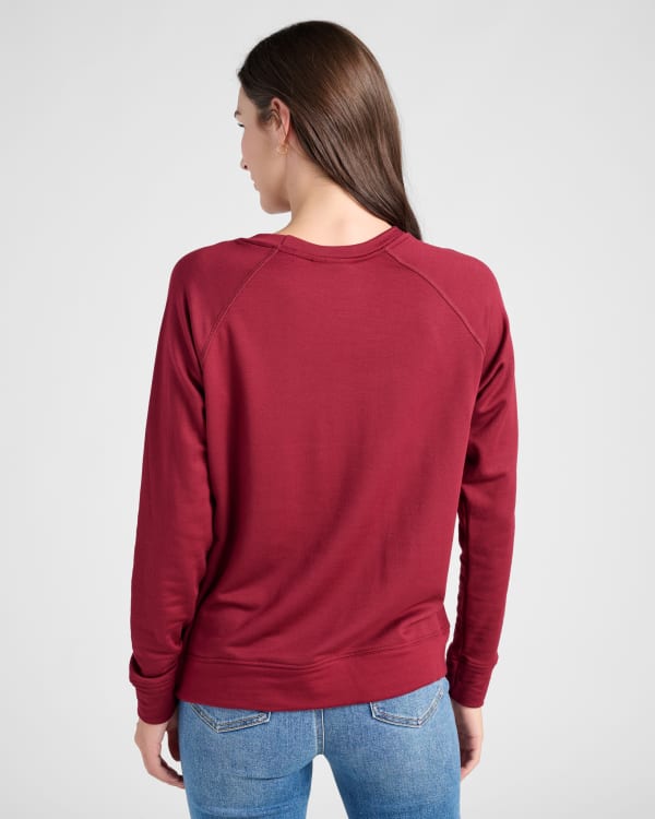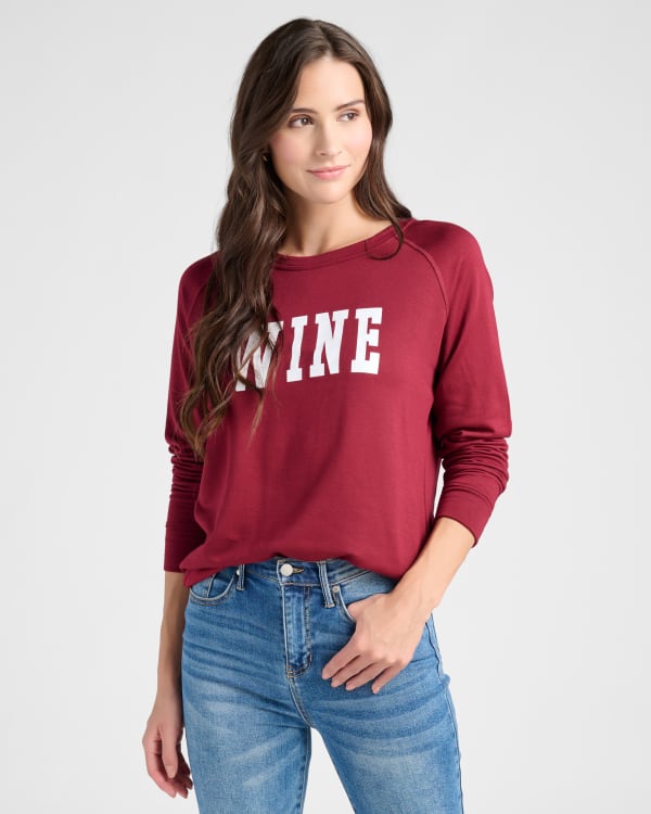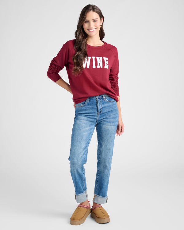 Pure comfort and a splash of joy! Our "WINE" graphic sweatshirt has a regular fit with raglan sleeves. Crafted in the USA from breathable stretch fabric with a soft brushed lining.