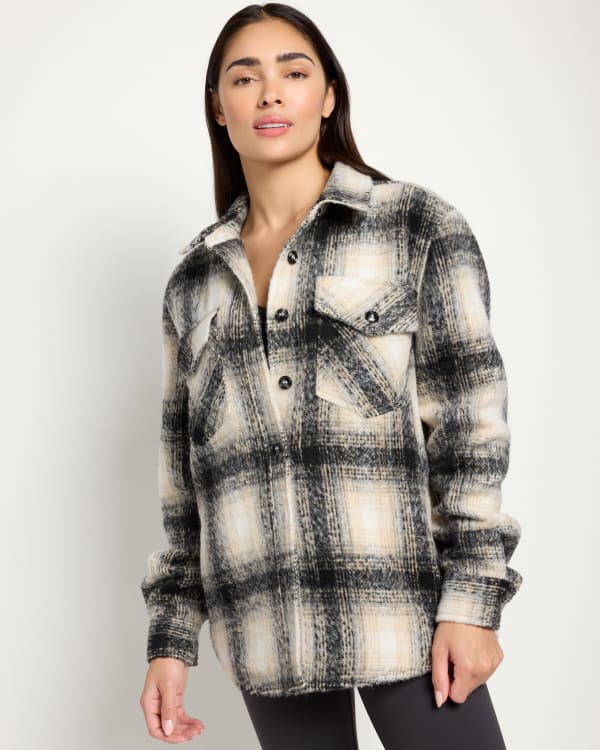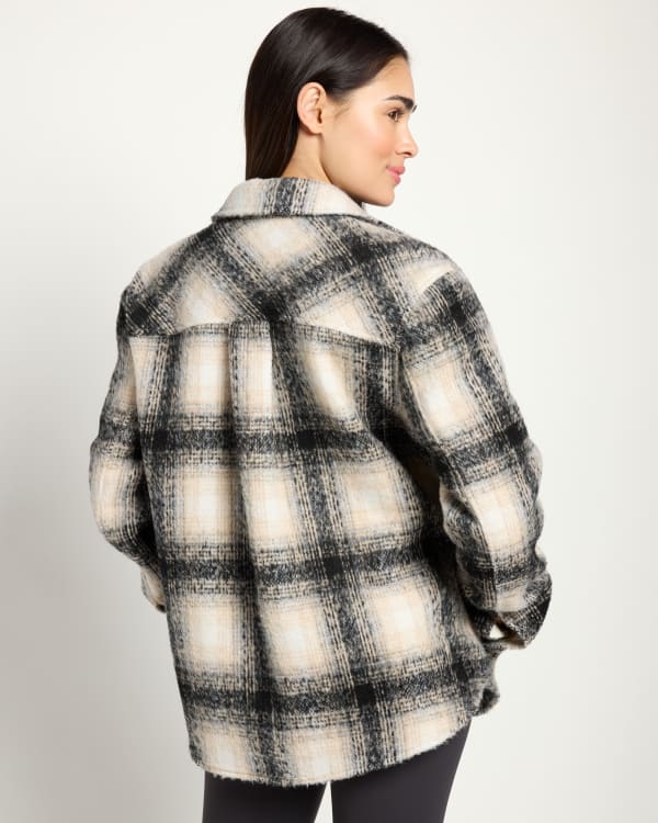 You'll be the leader of the style pack in this on-trend shacket! Boxy fit with a button-up front, two chest pockets and a rounded hem. Made of a so-soft and snuggly wool blend. Pairs seamlessly with dresses, jeans or your favorite leggings.