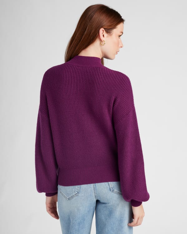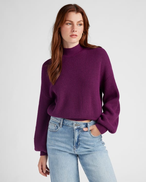 Cozy meets chic in our mock neck sweater. Featuring a relaxed fit, slouchy sleeves and soft ribbed details. Crafted from a dreamy midweight stretch knit, this pullover brings easy elegance to every day.