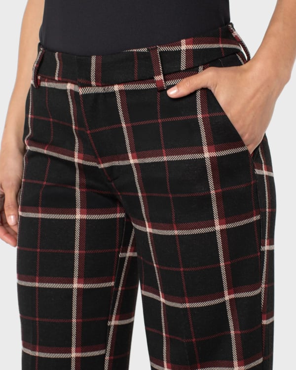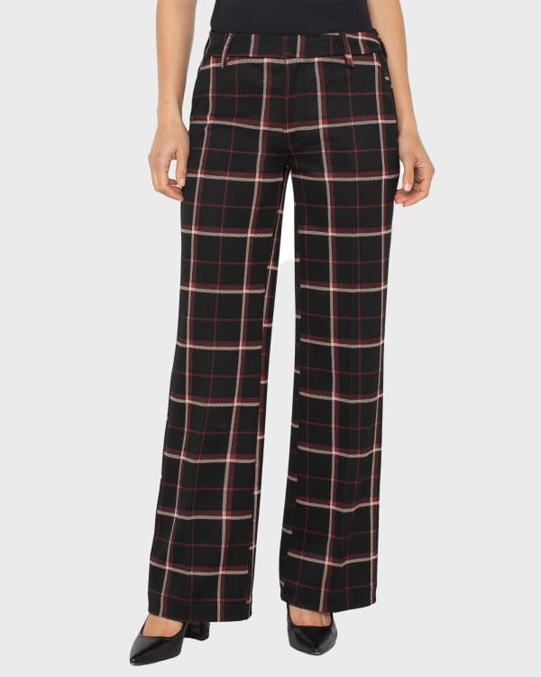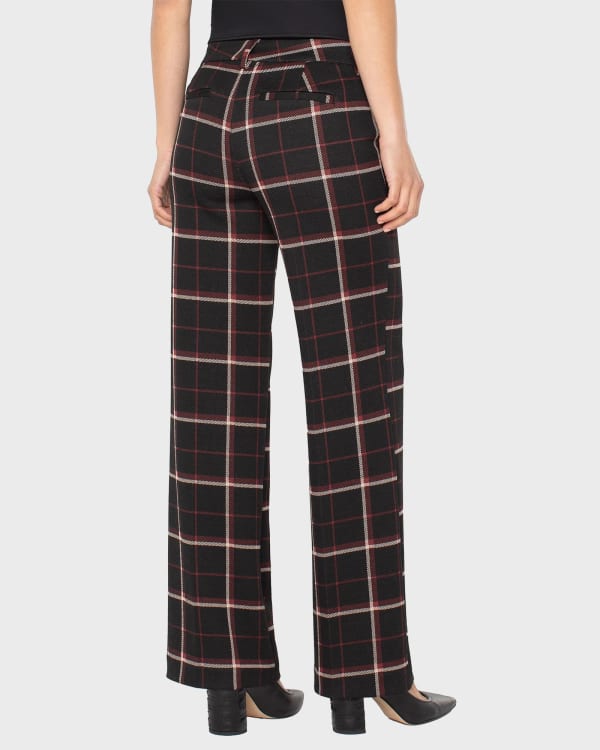 You'll be the office cutie in these plaid trousers! They're easy-wearing and hardworking in a wrinkle-resistant ponte knit. Tailored for a classic mid-rise waist, belt loops and wide-leg fit.