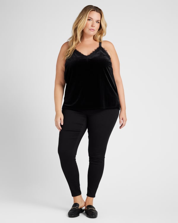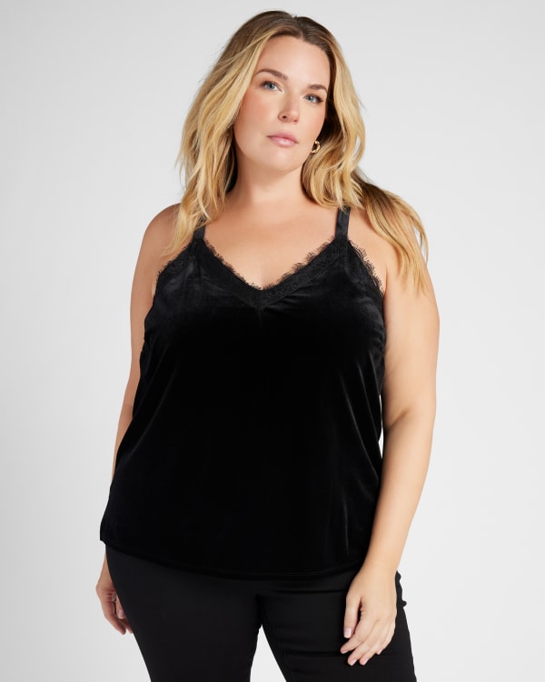 This velvet cami will completely elevate your #ootd! Relaxed fit with gorgeous lace details and tons of comfy stretch. Made of a so-soft velvet so you can feel your coziest.