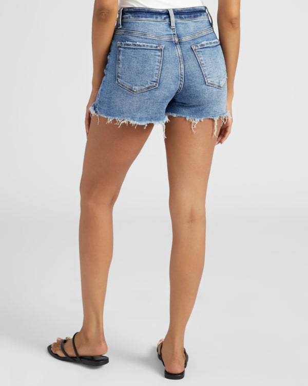 These high-rise jean shorts will always be in style! Slim fit with five pockets and a frayed hen. Made of so-soft and stretchy denim that's ready for all-day wear.