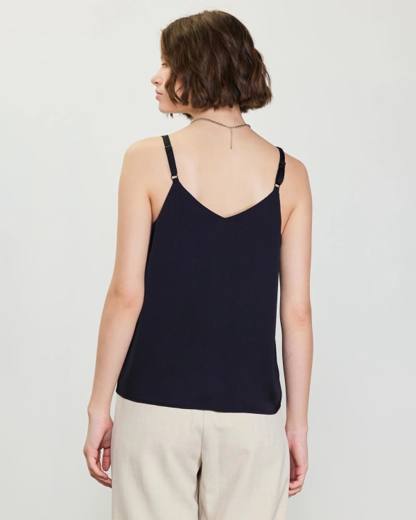 Add a touch of class to your #ootd with this satin cami! Relaxed fit and fully lined with adjustable straps and double strap detail. Made of a so-soft recycled fabric with a bit of an elevated sheen. Dress it up with a skirt or keep it casual with a denim jacket.