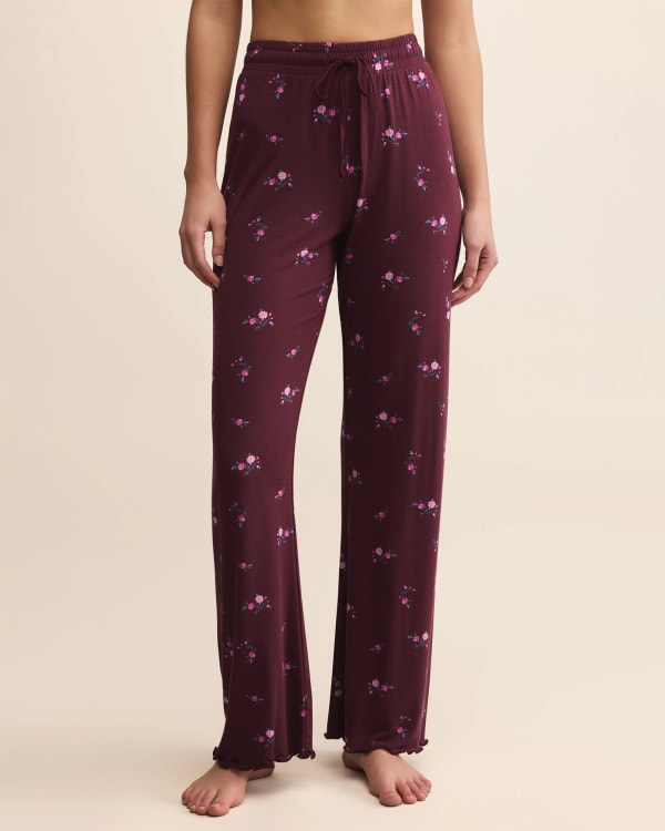 Because comfort should still look cute. Made from a soft, breathable modal knit, these floral-pajama pants deliver just the right mix of cozy and pretty for your night-in rotation — thanks to the drawstring waistband and frilled hem.