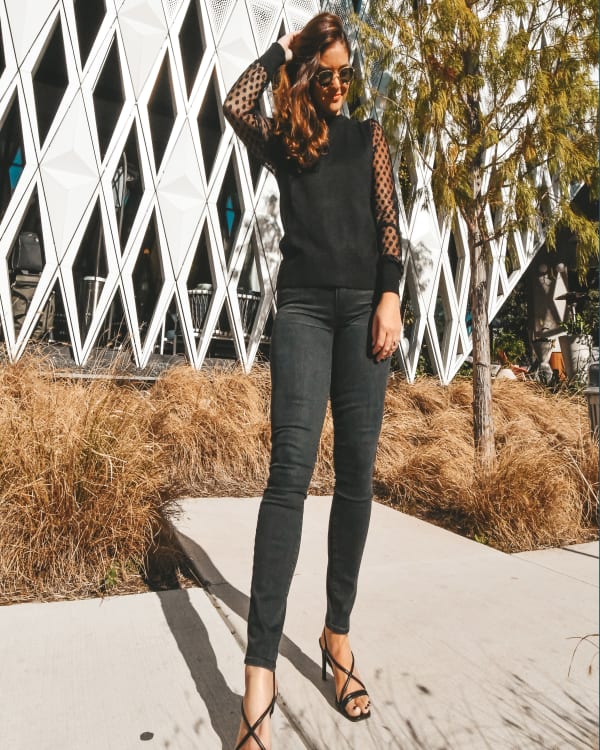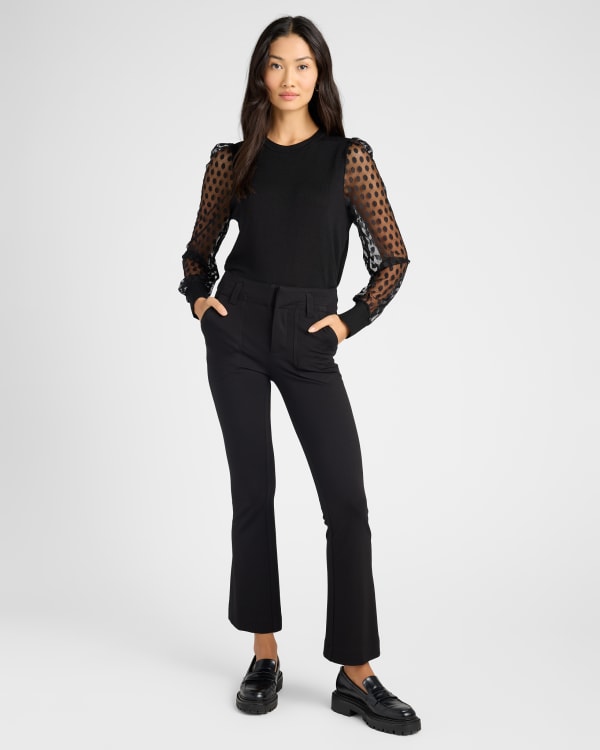 Polka Dot Mesh Sleeve Knit Pullover