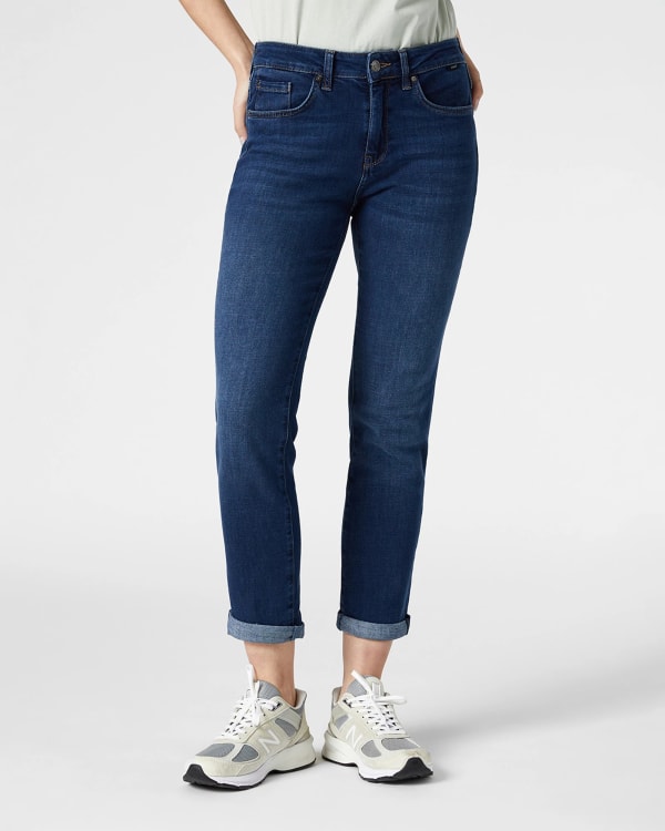 Polished or comfy? Get the best of both worlds with these jeans! Sleek design with a mid-rise waist and slim-fit legs. It's also a tried-and-true pair for long days thanks to the ultra-comfy, stretchy denim.