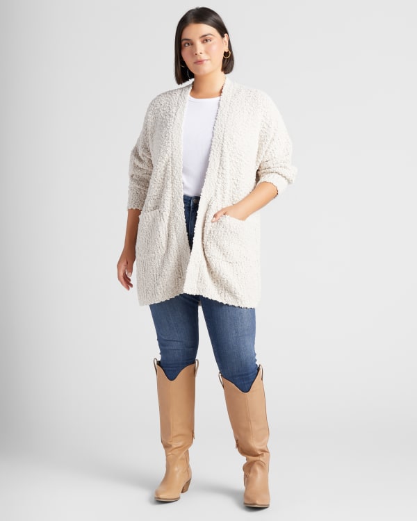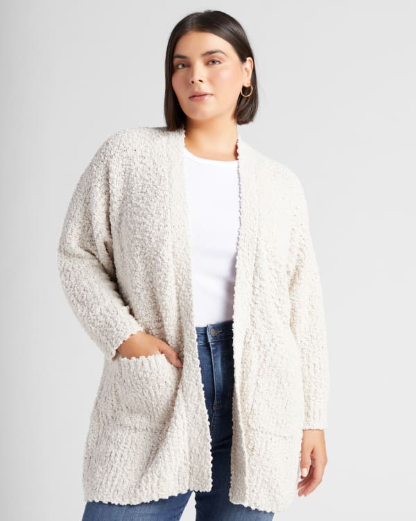 This so soft popcorn knit cardigan was made to cozy up your #ootd. In a long relaxed fit with a breezy open front and two phone-sized pockets. Bonus: its versatile style will match all your jeans.