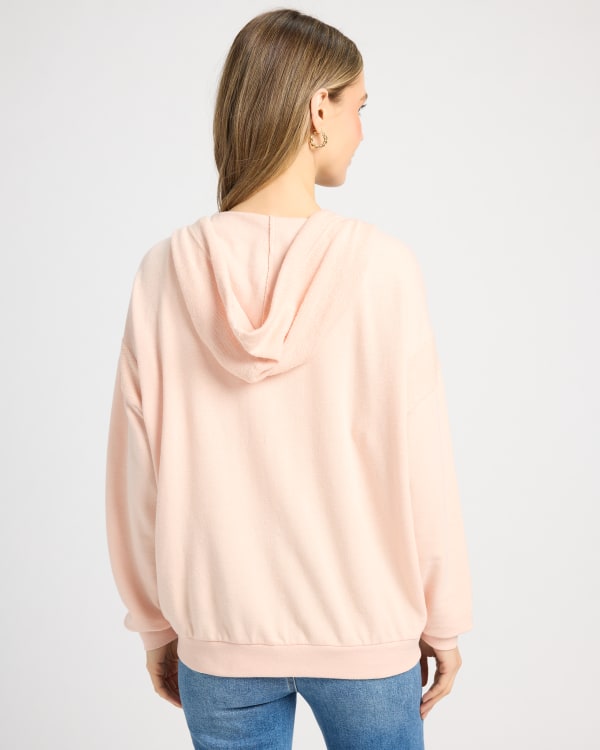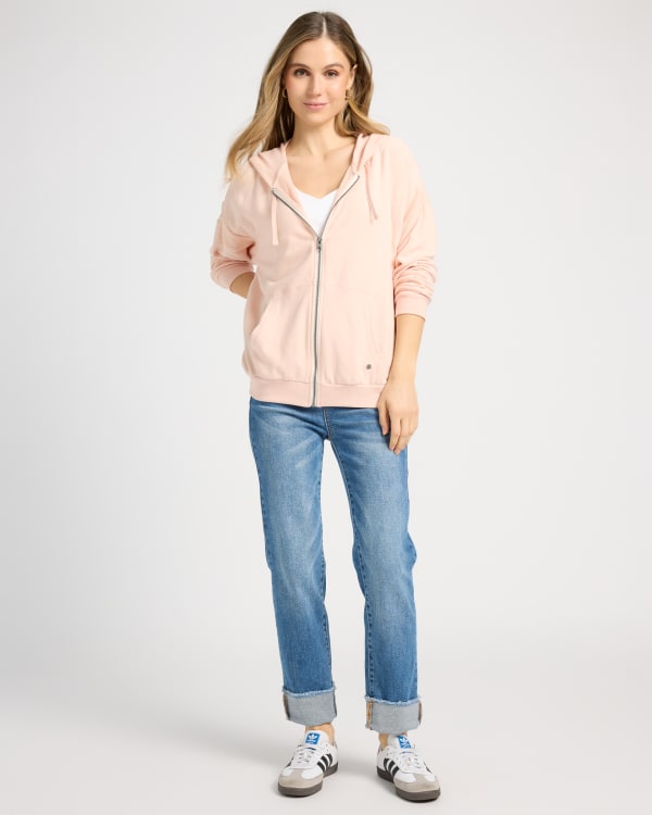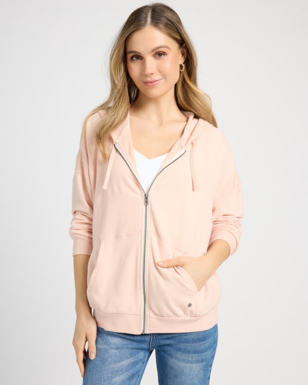 You'll be the chill cutie in this fleece hoodie! Relaxed fit with a zip-up front and kangaroo pocket. Ultra-soft and cozy fleece that's easy to wash and wear.