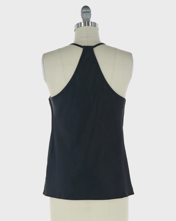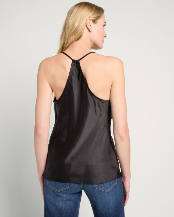 You will adore the luxe vibe of this glossy, silky-soft camisole. Slim fit with a racerback detail, cowl neck and slight flared hem. Just the thing to wear with breezy wide-leg pants.