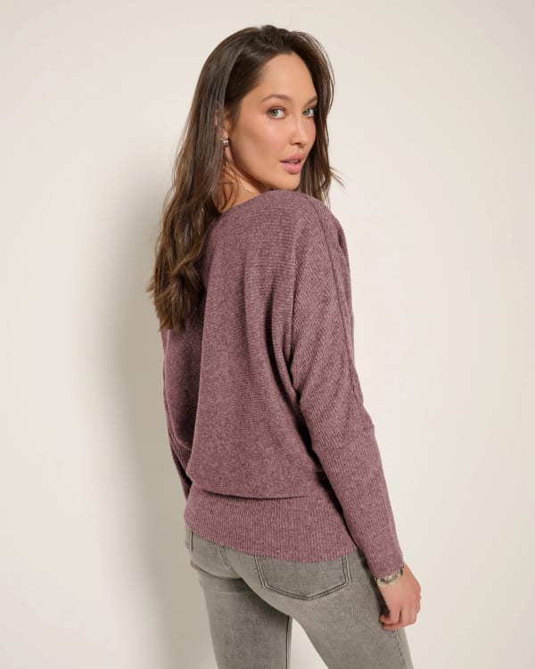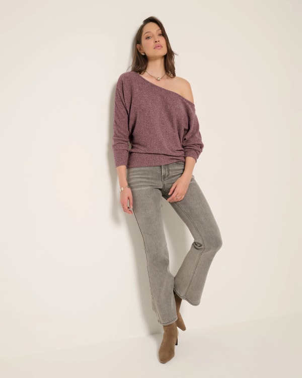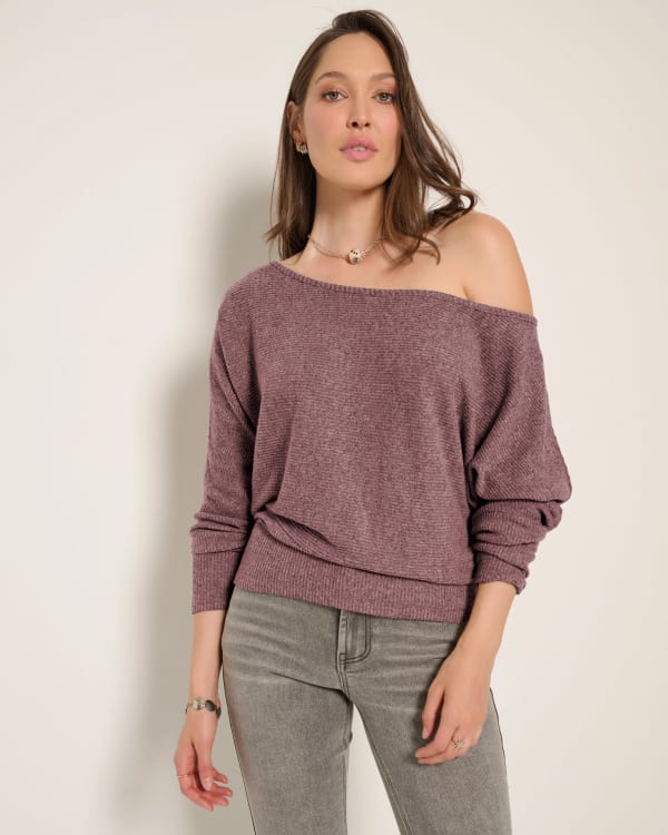 A little bit laidback, a little bit flirty. This off-the-shoulder long sleeve top is basically effortless. Ribbed knit with a relaxed fit that nails 'I just threw this on' energy.