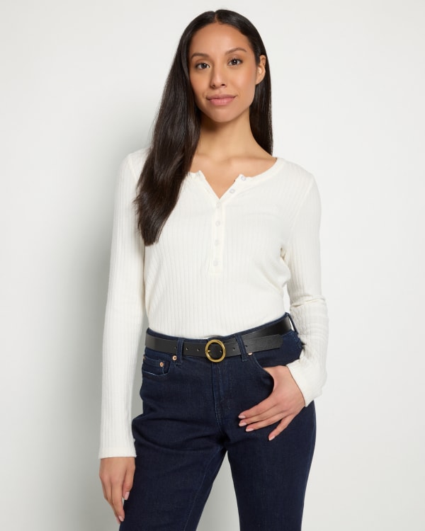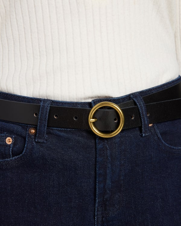 Finish your look with this genuine leather belt! It features a 1-inch slim profile that fastens with a gold-tone ring buckle. Made of a 100% genuine leather in a classic tan color. Size Guide: XS: 1st hole 24", last hole 30" | S: 1st hole 28", last hole 34" | M: 1st hole 32", last hole 38" | L: 1st hole 35", last hole 41" | XL: 1st hole 38", last hole 44"
