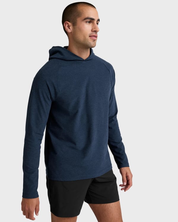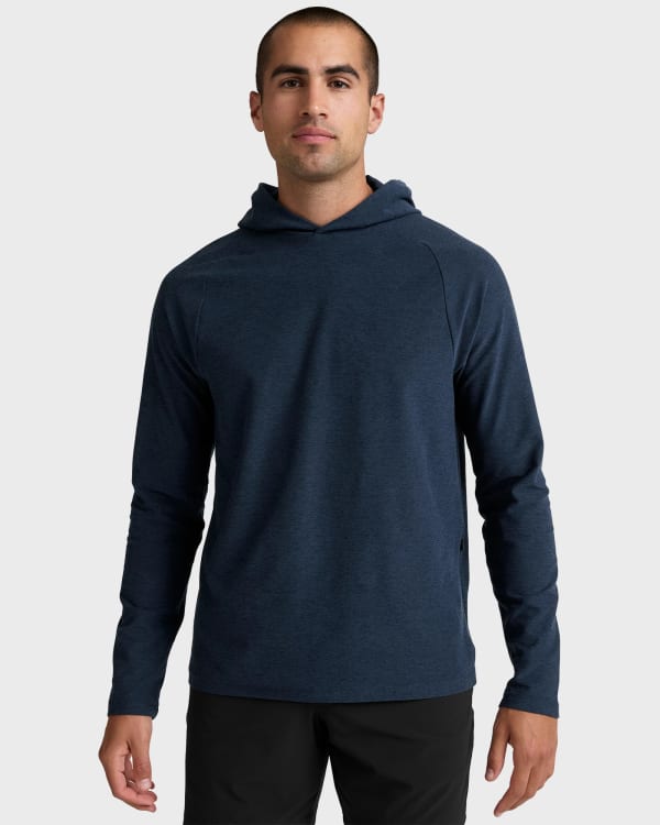 You'll be a man of action in this hoodie! It's built to move with you in a sleek and minimalist design with raglan sleeves. Easy to pull over in a smooth and stretchy knit.