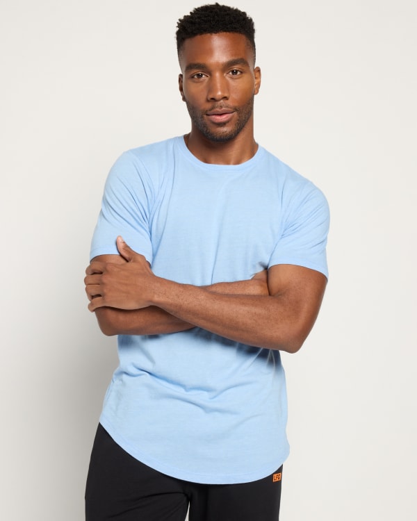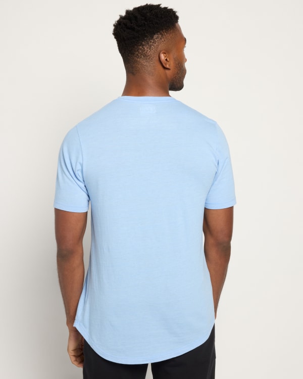 A classic V-neck tee with a luxe feel. Regular fit with the perfect amount of drape. Made in the USA of a so-soft and stretchy knit with a heathered finish.
