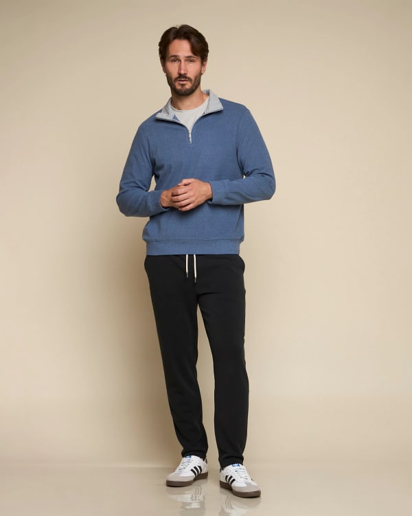 Whether you're headed to the great outdoors or an outdoor bar, this quarter zip pullover will keep you cozy! Regular fit a back yoke and stretchy trims. Made of a so-soft and warm fleece.