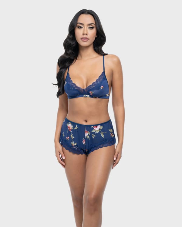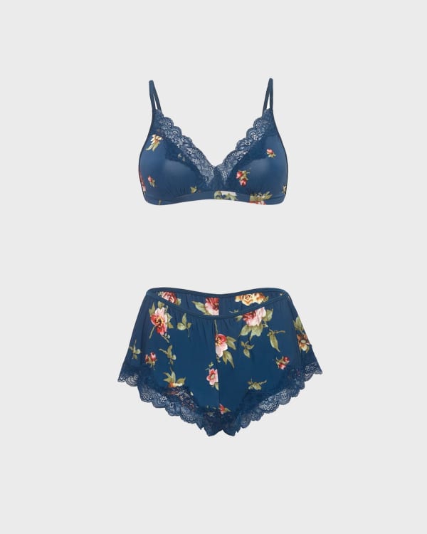 Go to bed gorgeous! This floral-print bra and shorts duo will be your new favorite at-home uniform. Soft and flirty with a wireless construction, stretchy elastic waist and lace trims.