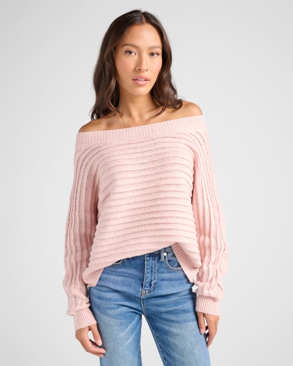 Ribbed Off Shoulder Dolman Pullover